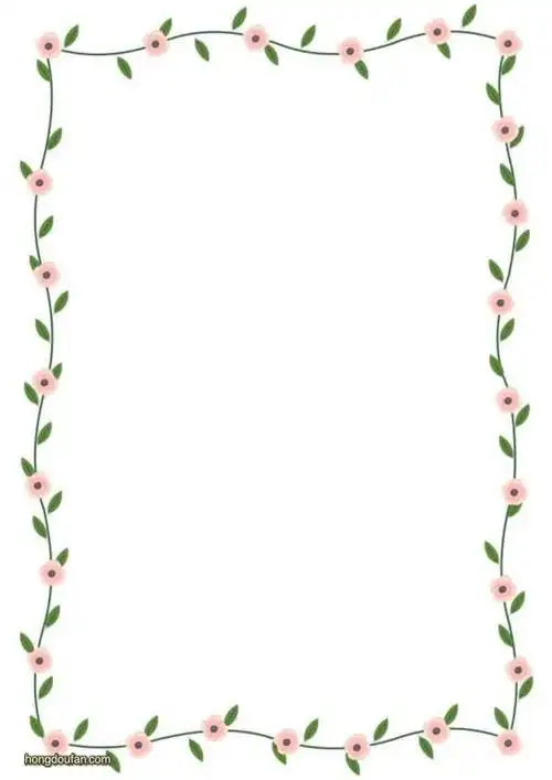 带有粉色小花朵和叶子围绕的边框的空白纸张背景图片下载