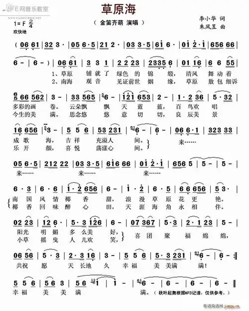 草原海简谱(歌词)_金笛齐萌演唱_秋叶起舞记谱上传