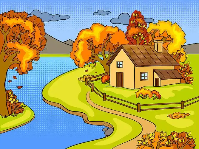 卡通手绘装饰秋天景色