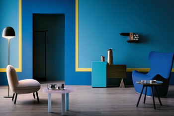 高雅的蓝色沙发背景墙活跃了空间,用现代的表现力汇聚成一个时尚与