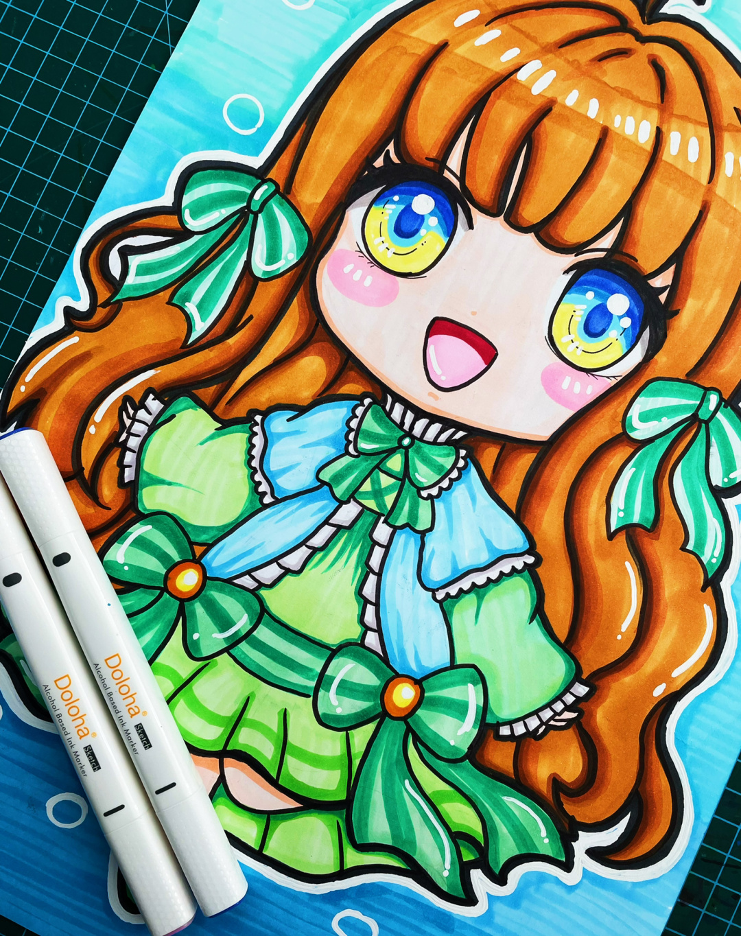 q版动漫人物动漫女孩彩铅马克笔结合过程