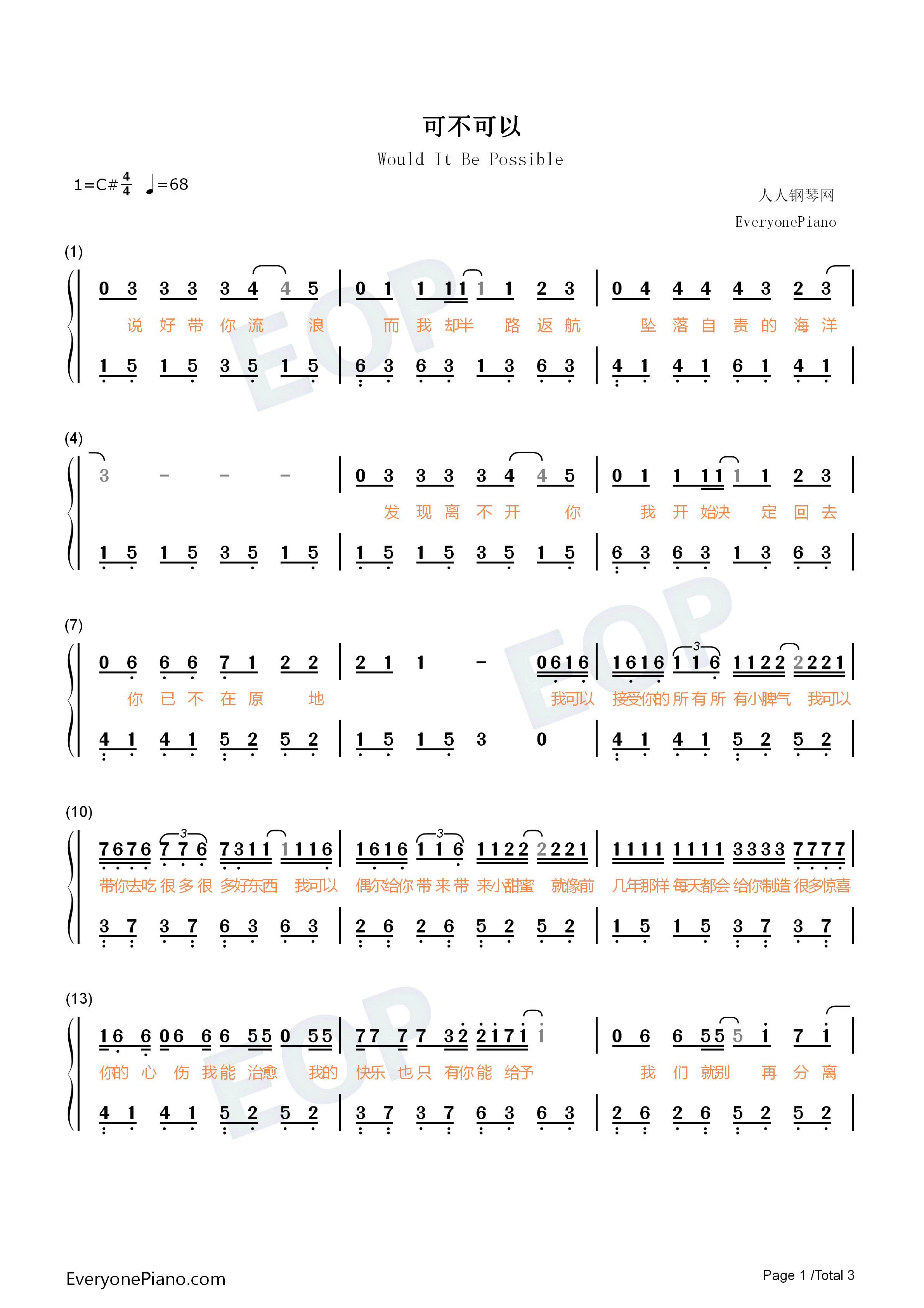爱人错过-走过路过没遇过回头转头还是错-抖音双手简谱预览1-钢琴谱
