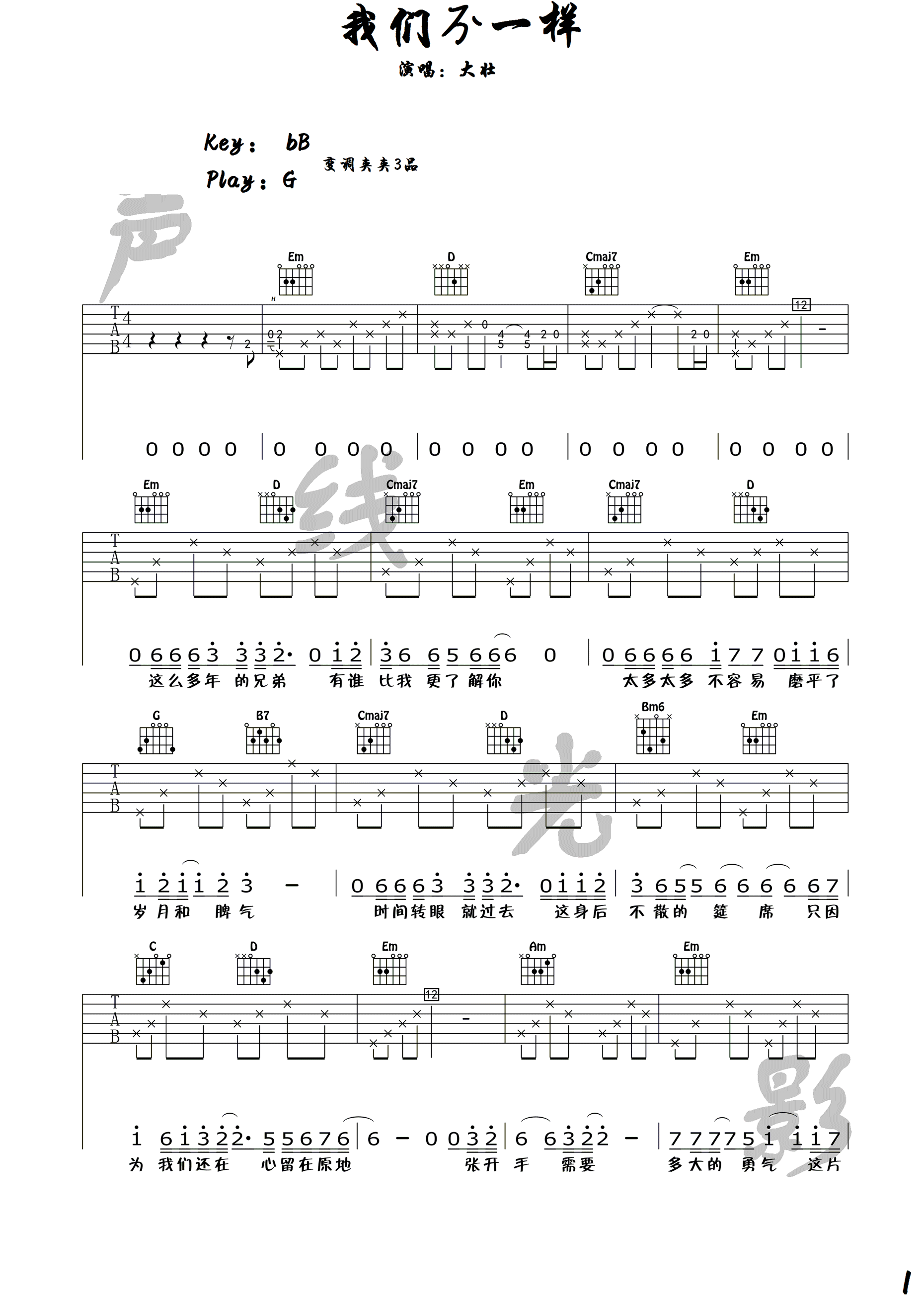 我们不一样吉他谱-大壮-g调带前奏-高清图片谱1