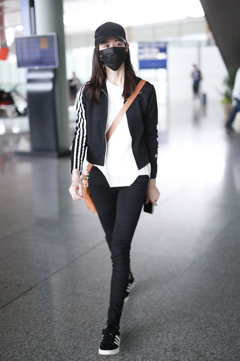 张钧甯街拍:adidas运动外套白t恤 铅笔裤小黑鞋简约利落