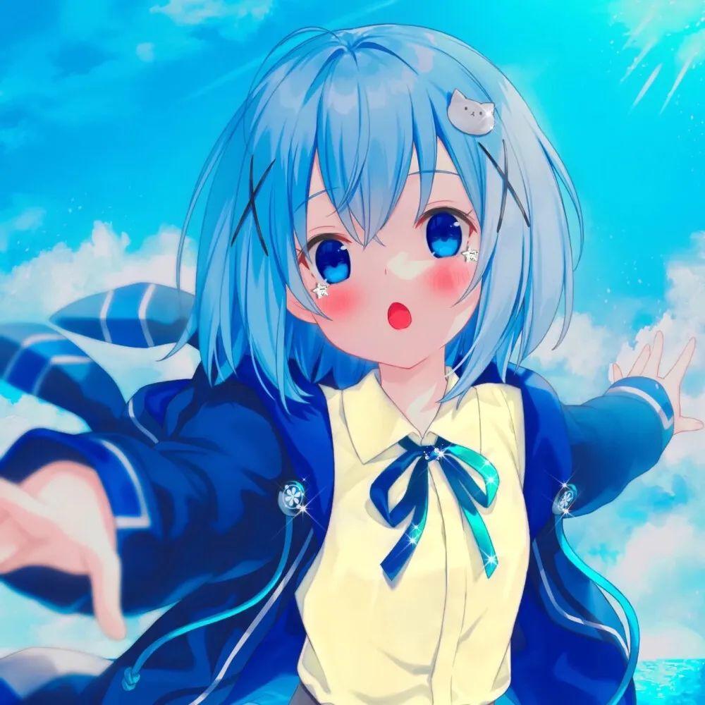 蓝色系可爱女生漫画头像大海的颜色