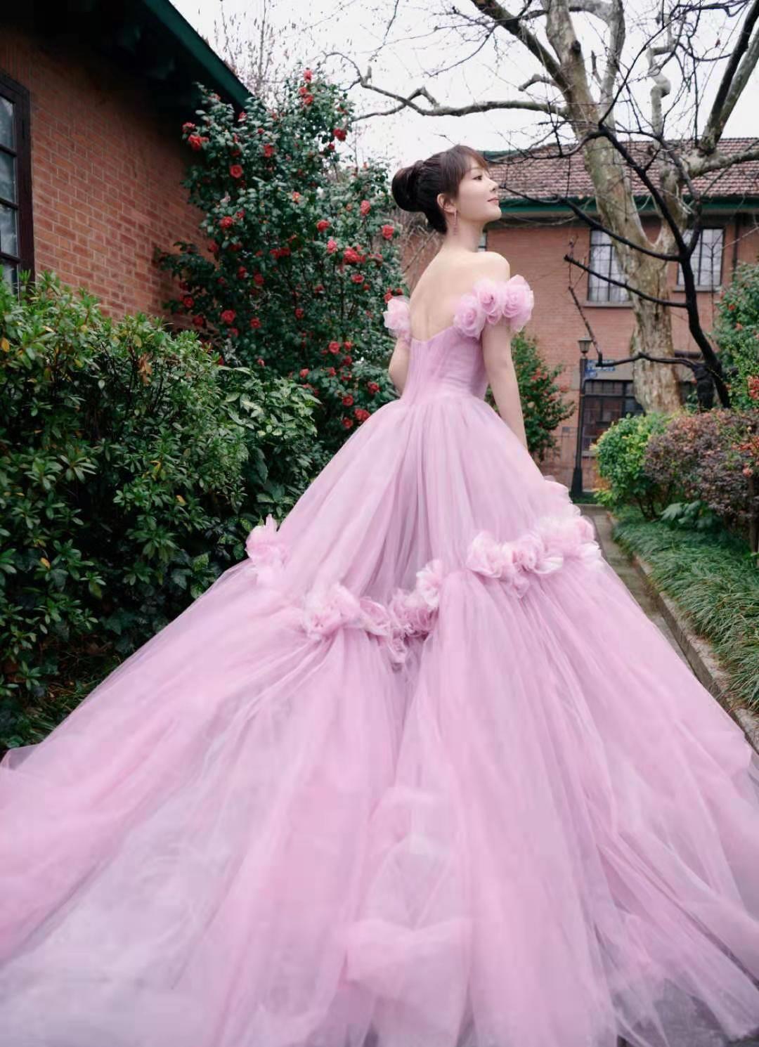 杨紫粉色花瓣公主裙造型##杨紫粉色公主裙氛围感大片