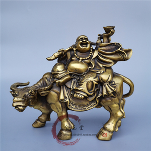 批发纯黄铜 开光纯铜招财弥勒佛骑牛 聚财聚福家居工艺品风水摆件