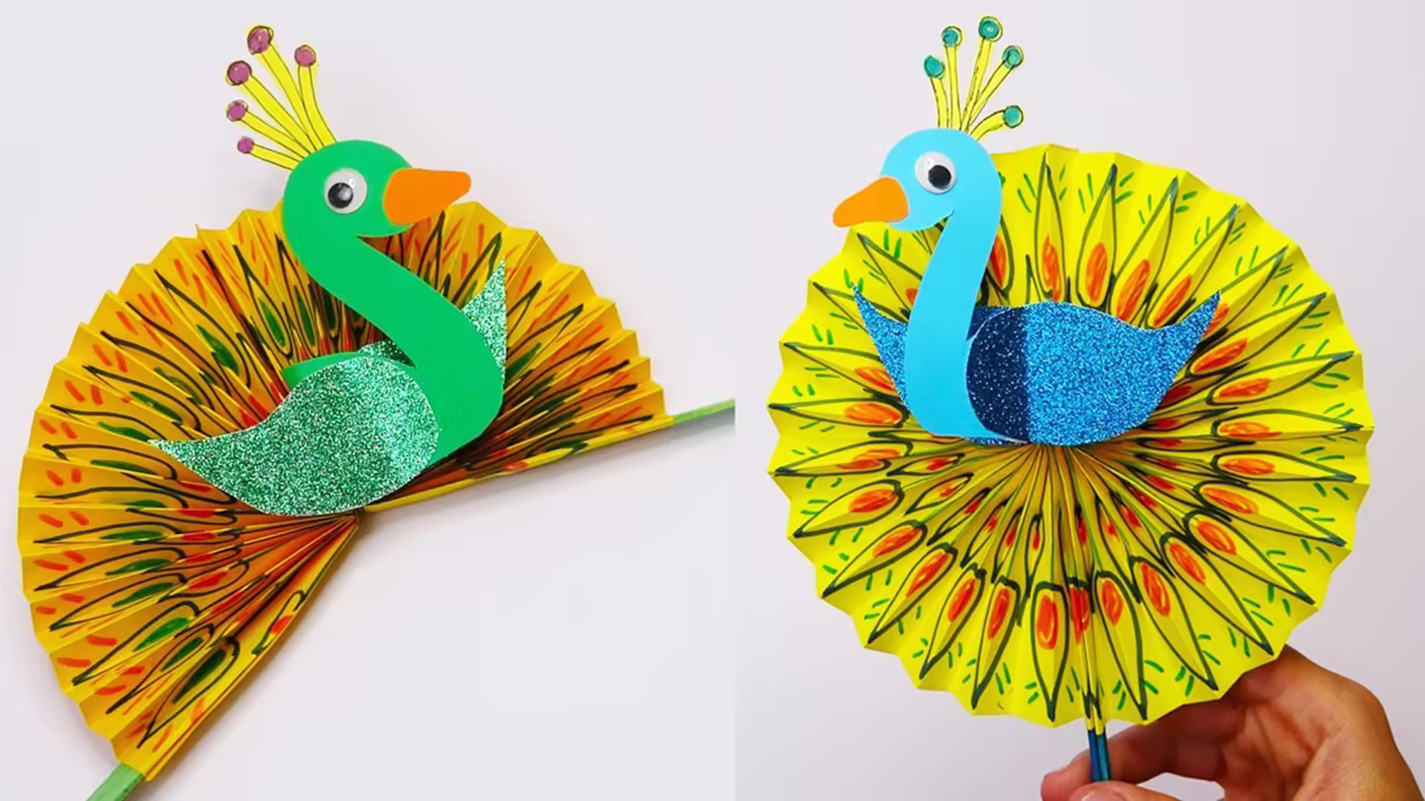 儿童娃娃益智折纸手工:一起来制作华丽的孔雀吧!