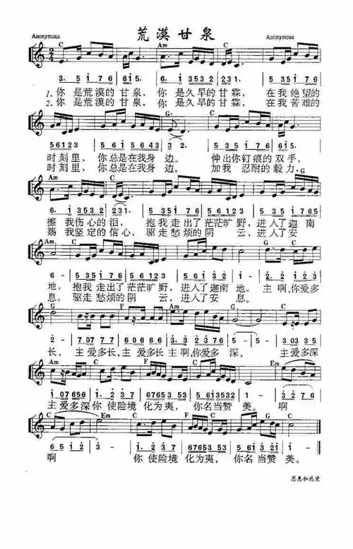 荒漠甘泉_荒漠甘泉简谱_荒漠甘泉吉他谱_钢琴谱-查字典简谱网