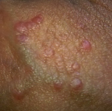 阴囊上起了个小肉阄脖子上腋下乳头边