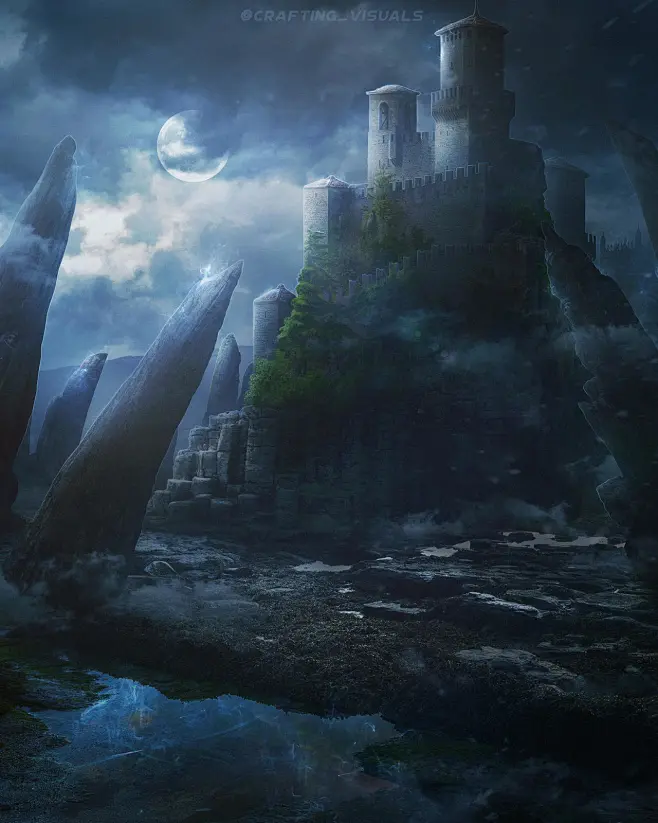 城堡自己拍的月亮合成的暗月古堡