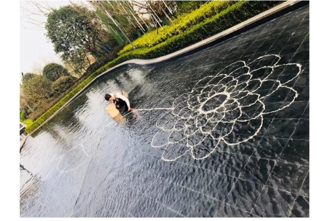 售楼 处外面水池底下用白石子摆成的字,难道每天都要按照变化的气温