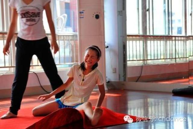 家长陪女儿去排练舞蹈,一个大点的女孩在压腿时疼的哭了起来.