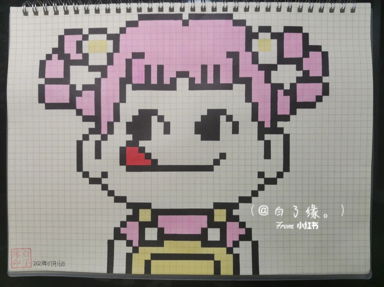 临摹非原创 b5网格本 5mm格子 44×29 #像素画 #像素画教程 #小女孩