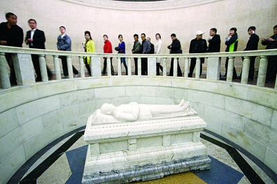 综合 上午8:45起,参观中山陵祭堂和墓室的游人开始排队进入,中山陵园