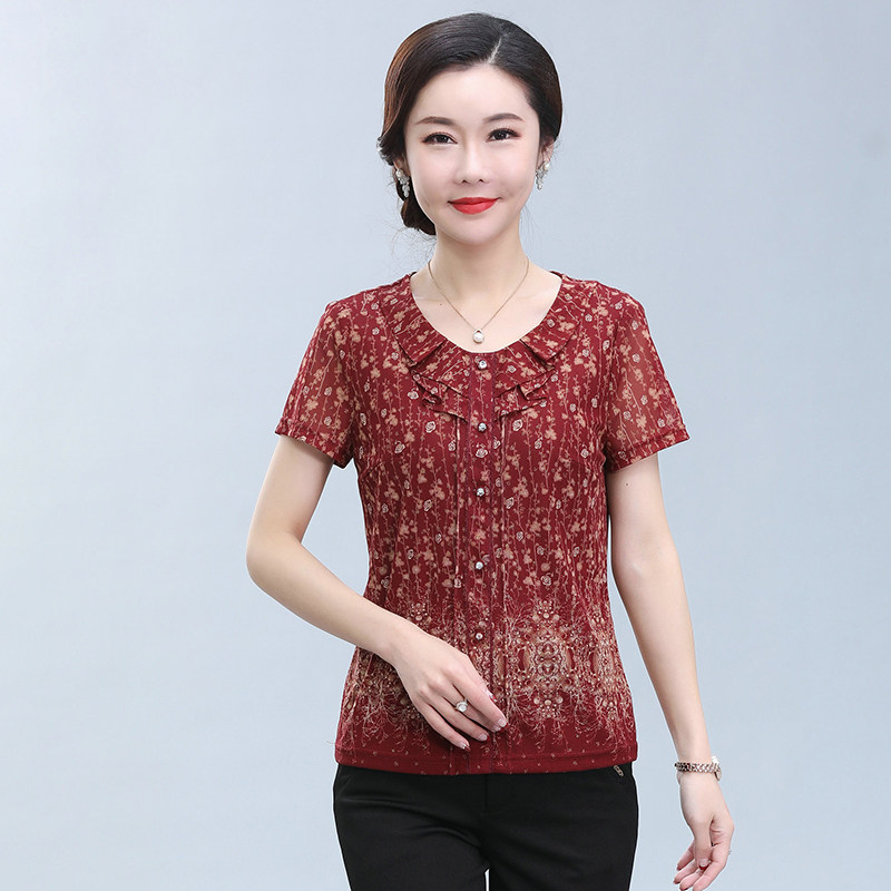 夏季新款2020妈妈装夏装短袖碎花雪纺衫t恤中年女夏季上衣中老年女装