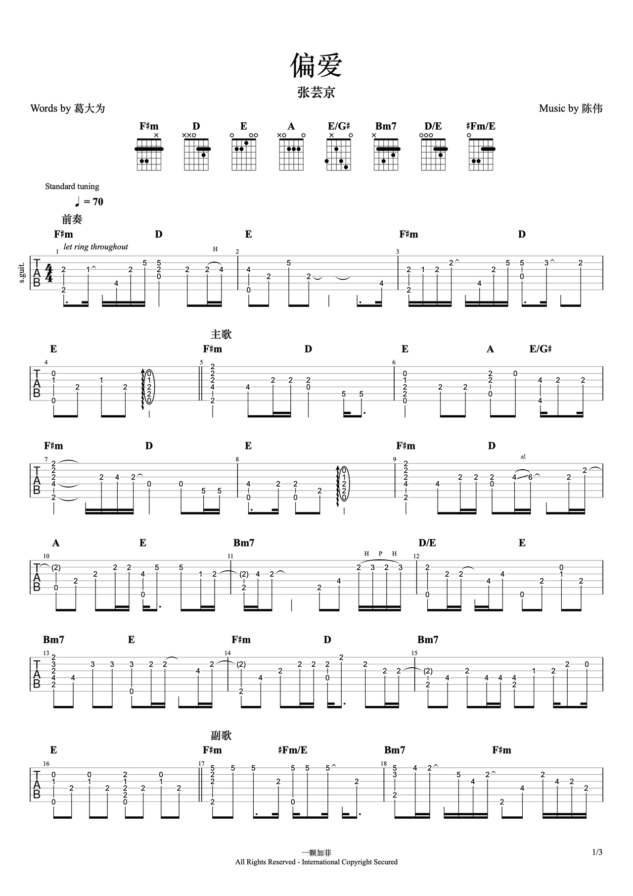 偏爱吉他谱_张芸京_c调弹唱86%原版 - 吉他世界
