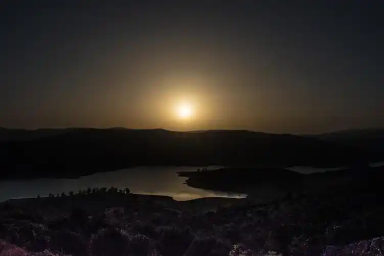 日落,暮光之城,天空,晚上,太阳,树木,湖