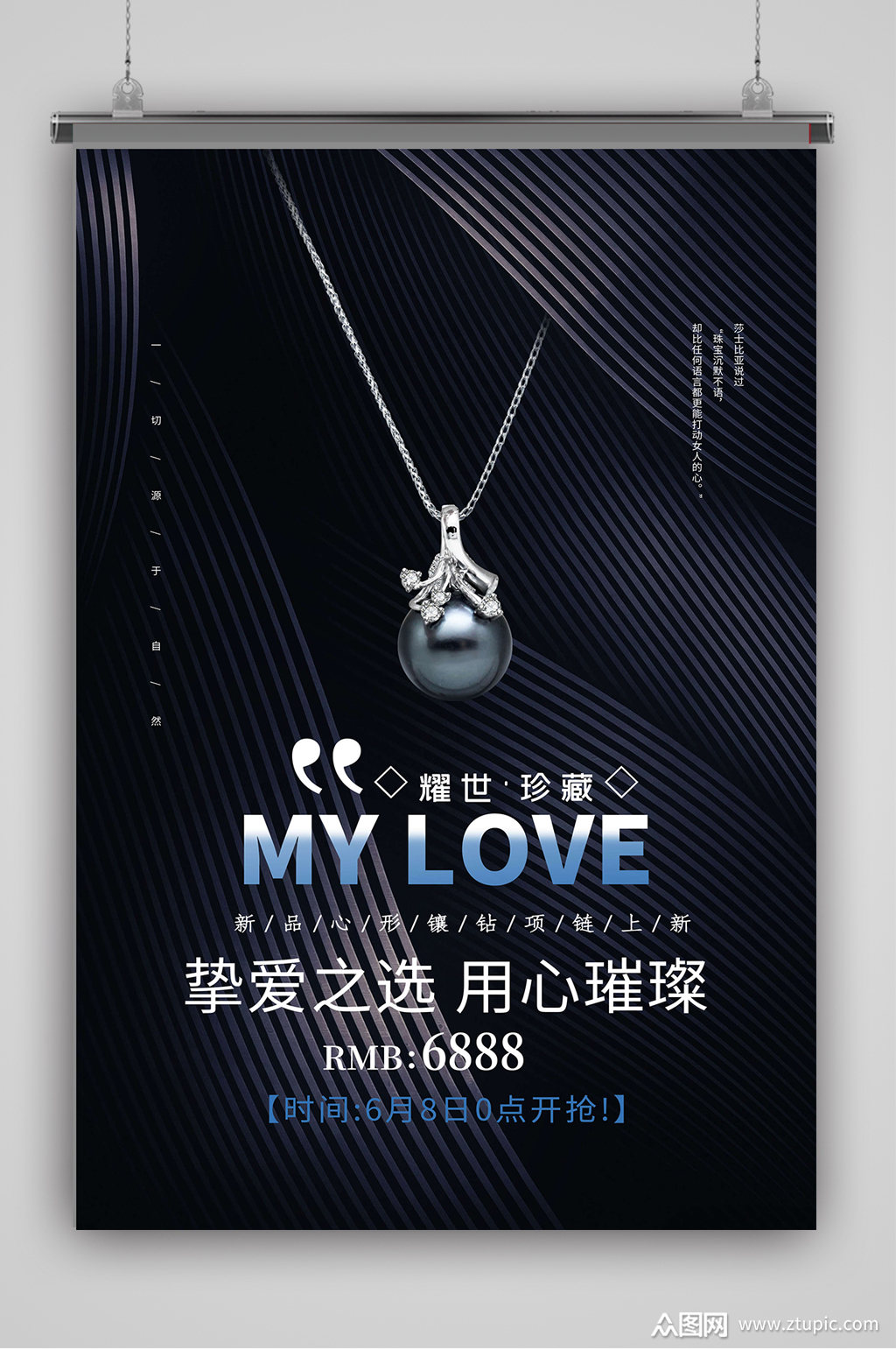 珠宝海报钻石玛瑙戒指翡翠黄金手环首饰项链psd海报模板素材设计