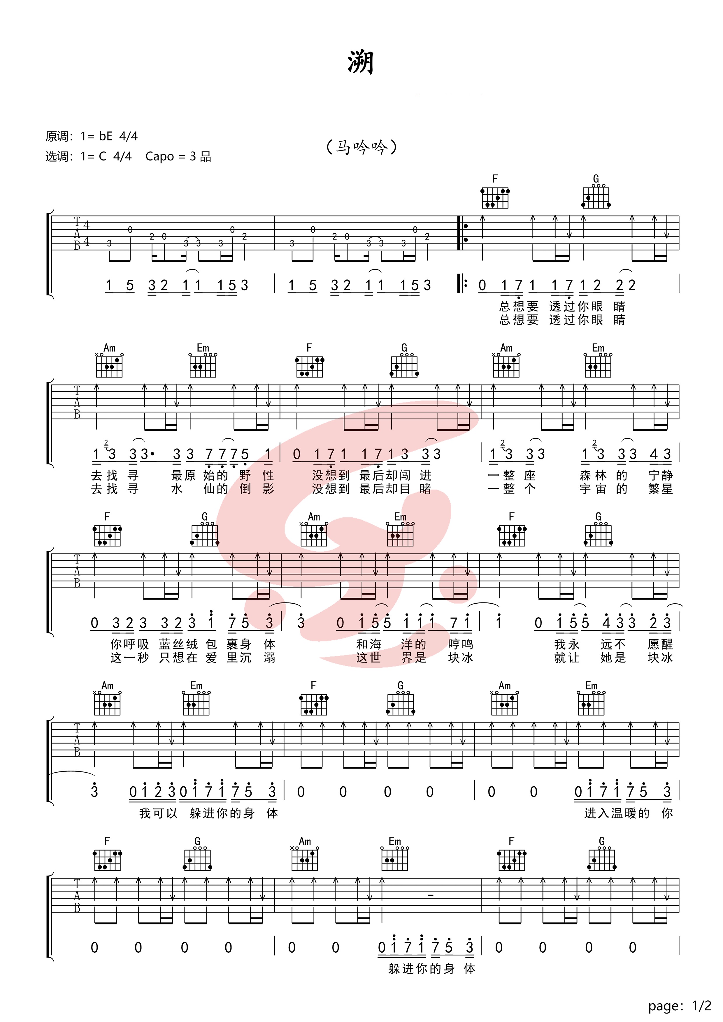溯吉他谱马吟吟corsakc调原版弹唱六线谱高清图片谱