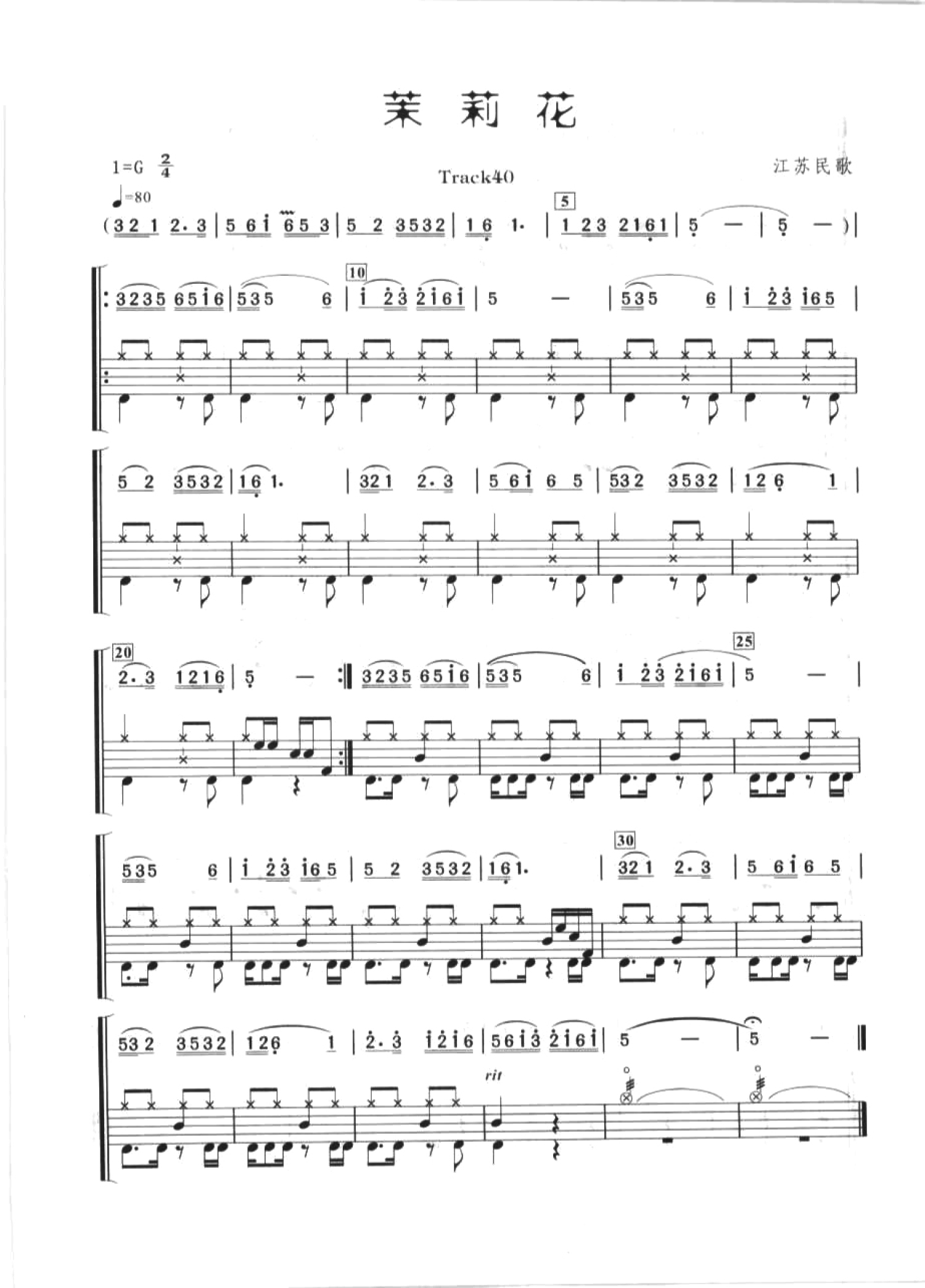 茉莉花鼓谱架子鼓谱