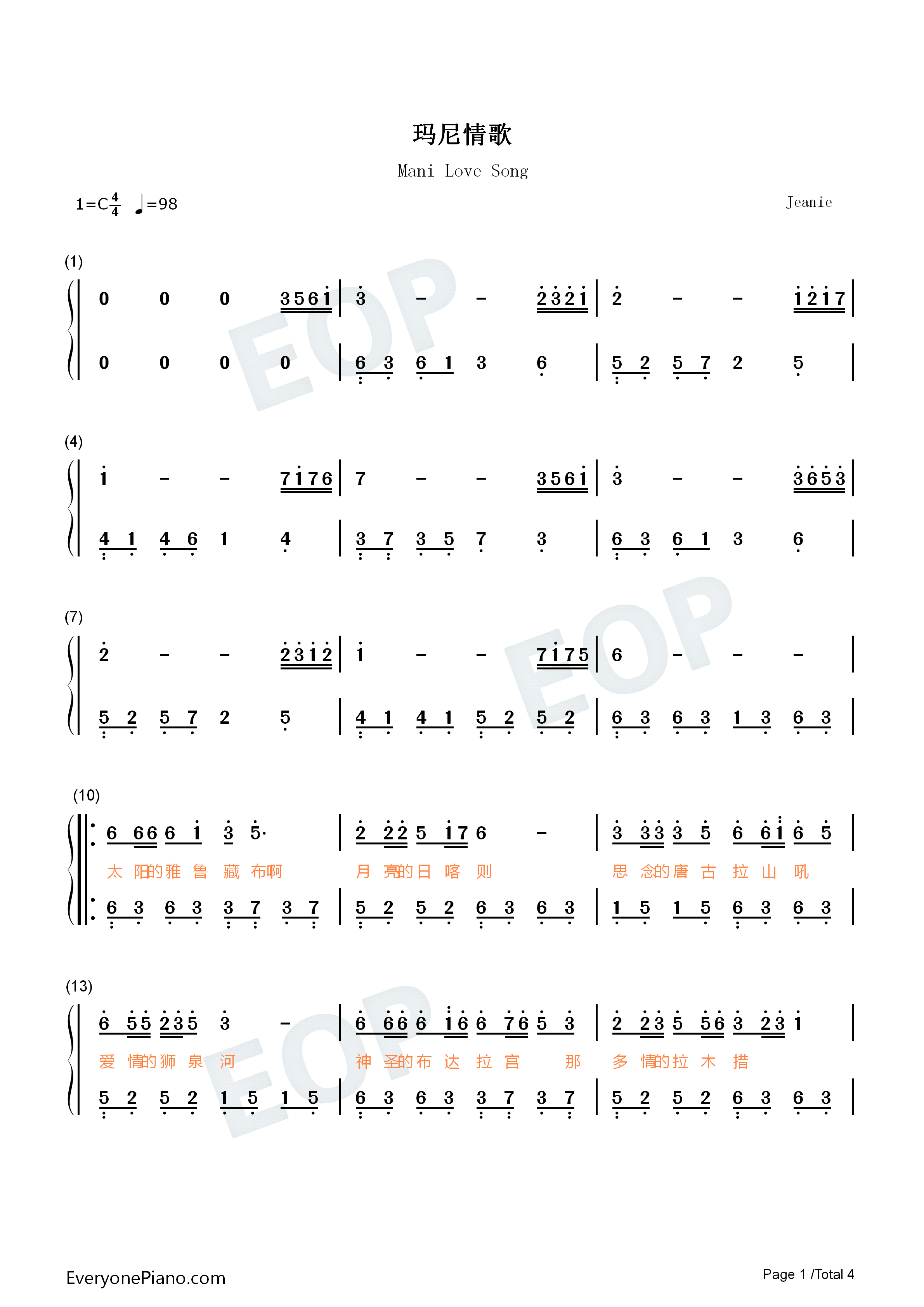 玛尼情歌简谱唱谱简谱视唱简谱教唱视唱简谱教学识谱