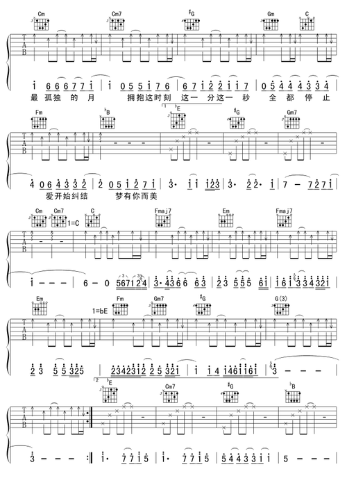 屋顶吉他图片谱周杰伦吉他谱周杰伦吉他图片谱4张