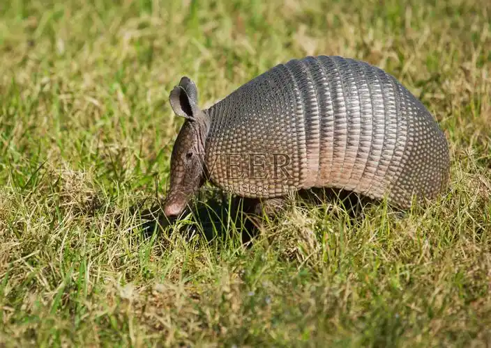 在草地上觅食的犰狳照片摄影图片
