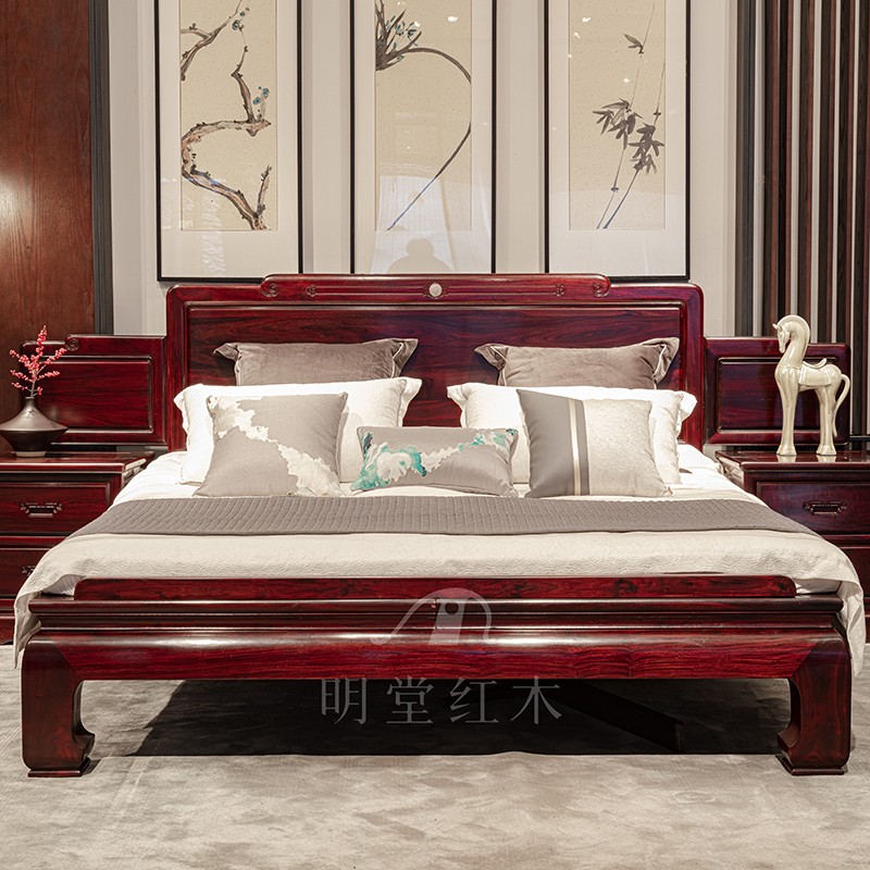 8米双人大床主卧明清仿古雕花婚床家具 床 舒睡冰丝黄麻床垫 1.8*2米