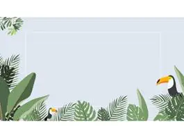 四张卡通大嘴鸟阔叶植物叶子ppt背景图片