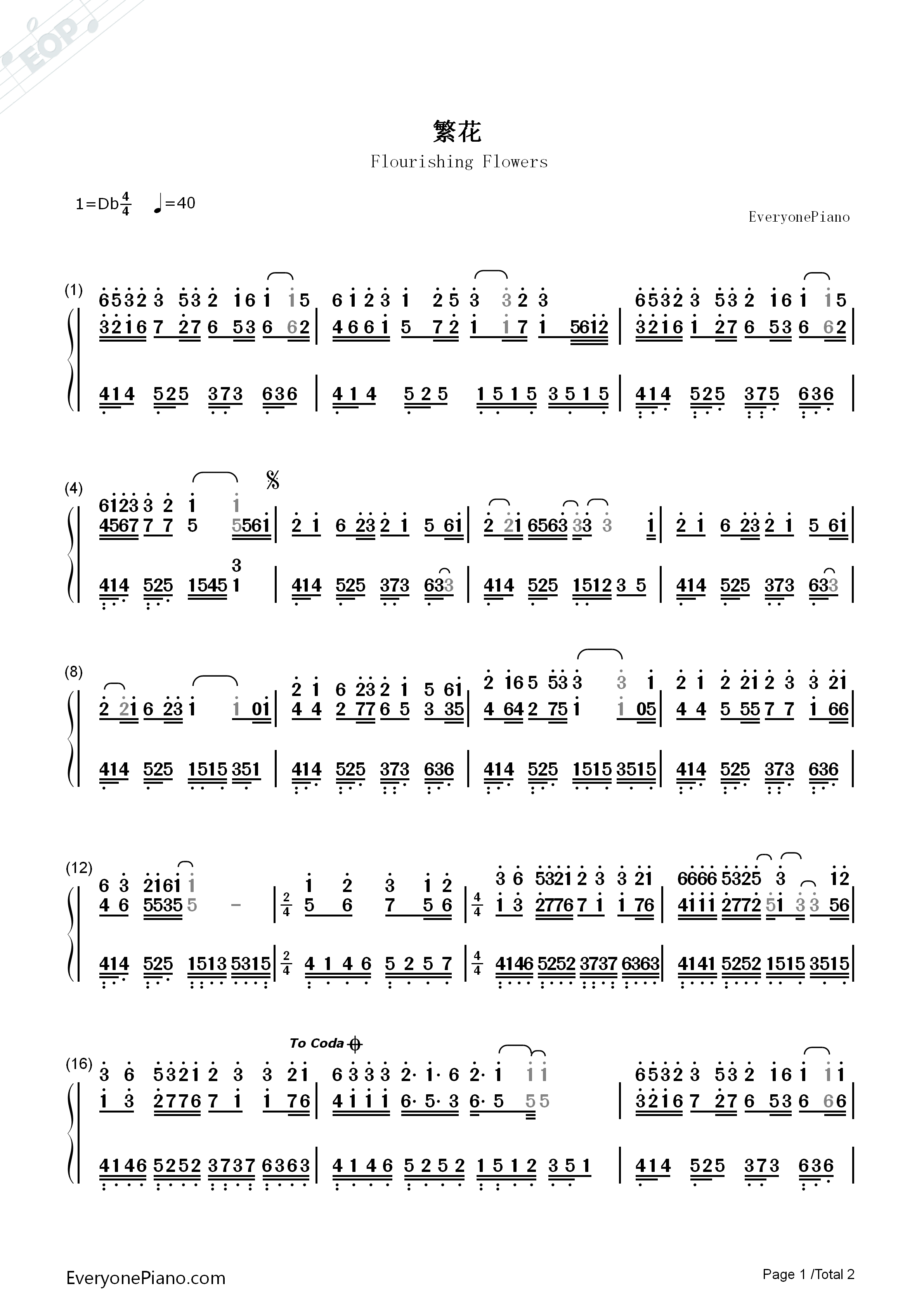 繁花简谱-董真演唱-电视剧《三生三世十里桃花》插曲1
