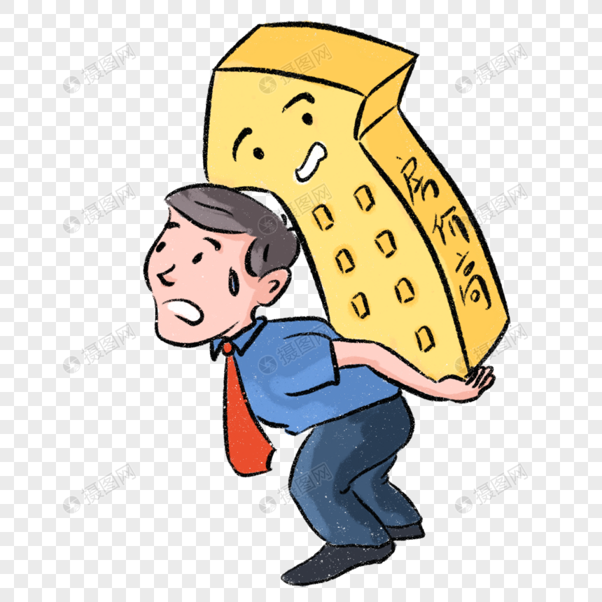 手绘卡通背负压力前行的男人插画免抠元素
