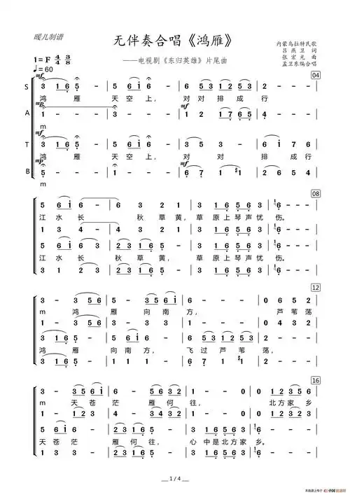 鸿雁(无伴奏混声合唱)_简谱_搜谱网