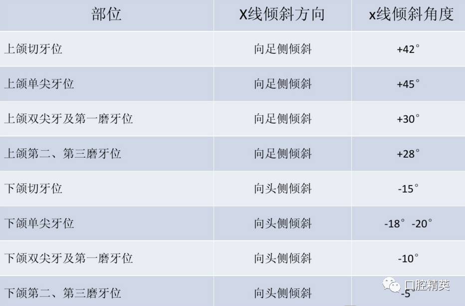 负角度:拍摄投照下颌牙时,x线向头侧倾斜,称为"负角度-".