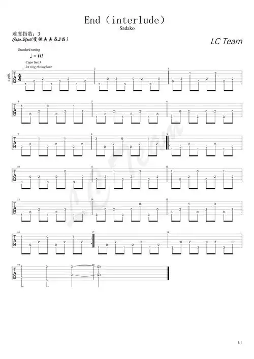 《end》吉他简谱c调指弹谱(sadako)|高清吉他曲谱