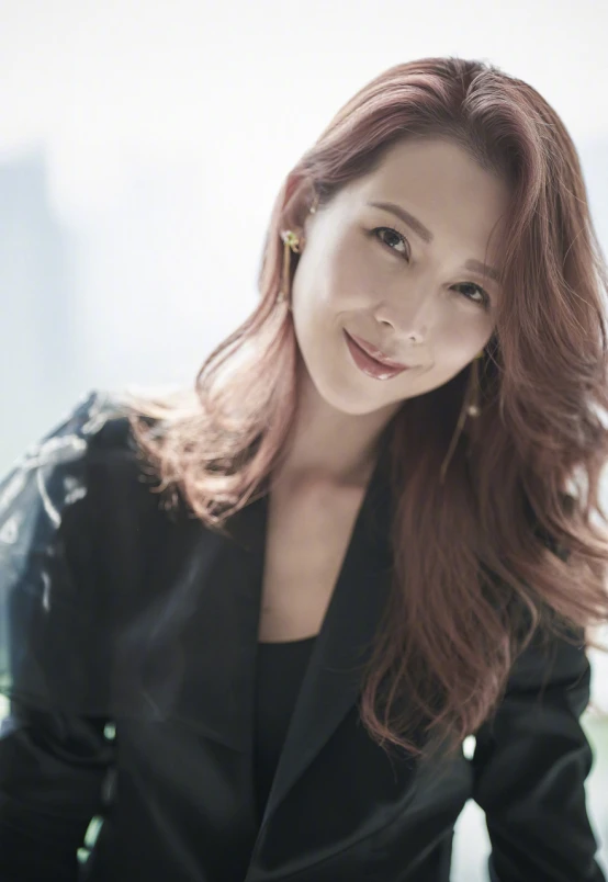 "皇后"蔡少芬47岁染红发,身穿缎面西装气场全开,个性十足