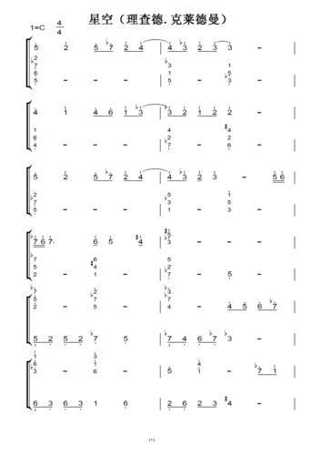 钢琴双手简谱 钢琴谱 钢琴简谱 第1页 (共1页,当前第1页) 星空(理查德