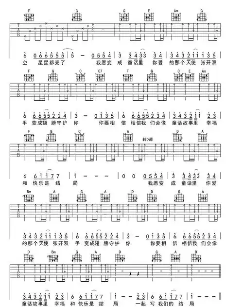 童话吉他谱c调弹唱六线谱标准弹唱谱
