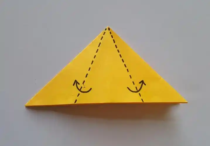 沿着1-2步的折痕,将纸折成双三角形 4.将其中