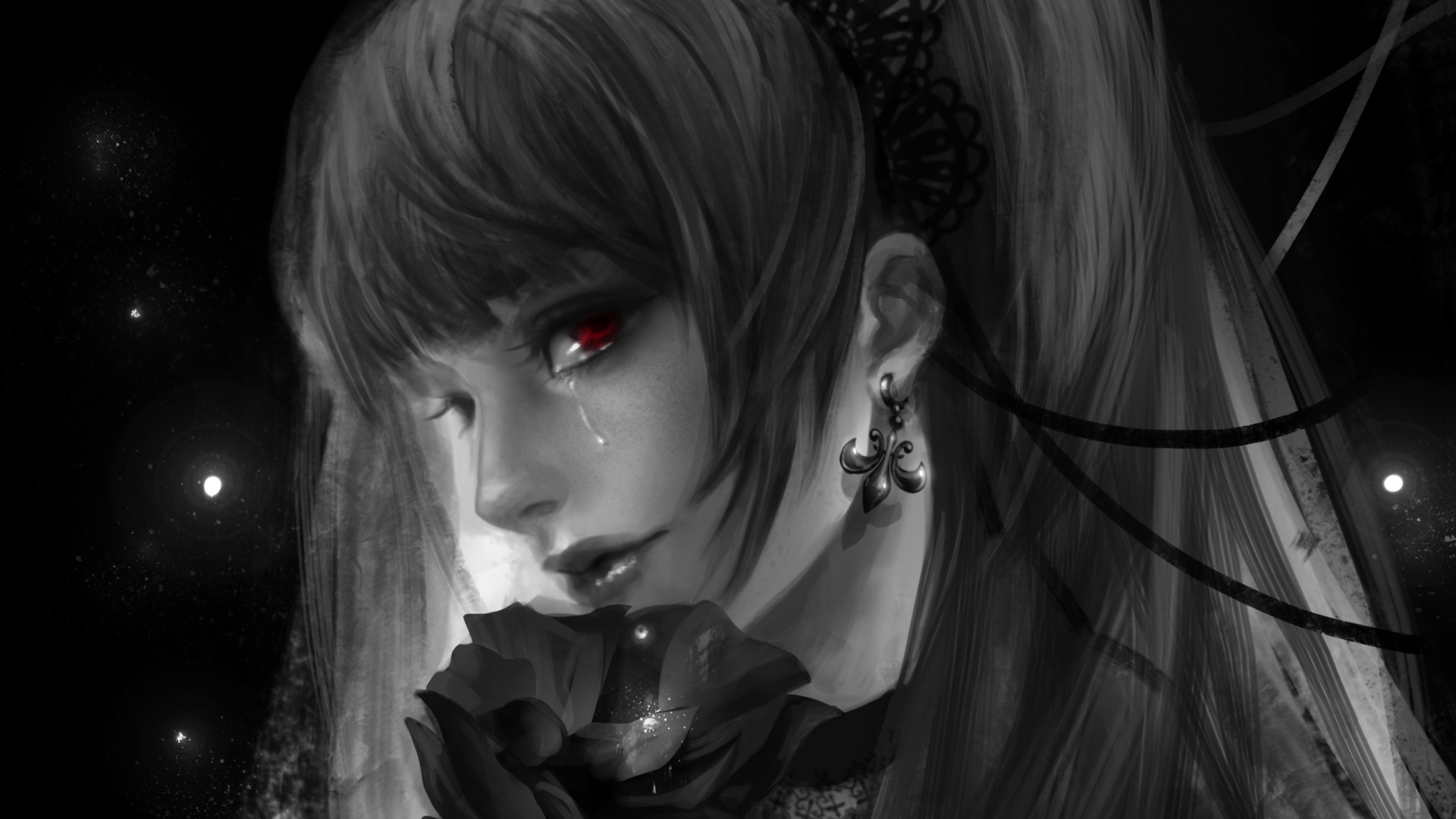 死亡笔记,弥海砂,女神,哭泣,眼泪,玫瑰花,桌面壁纸