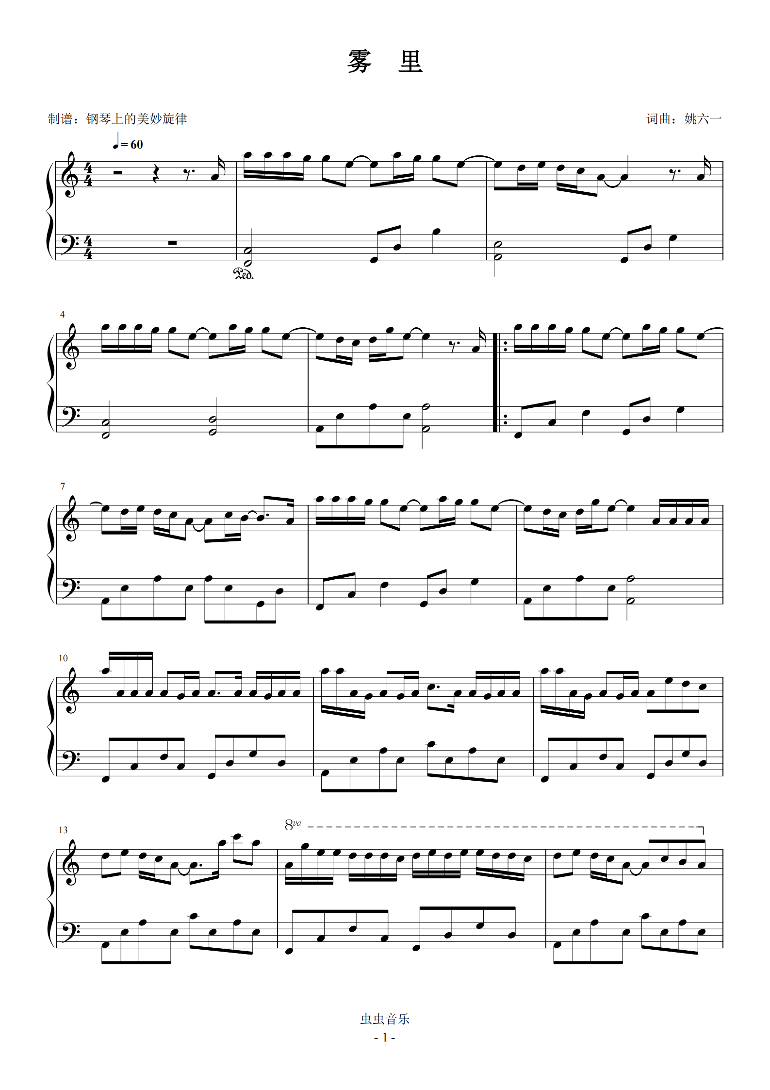 雾里c调简易版钢琴谱-虫虫钢琴