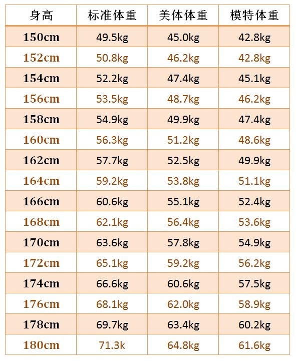 包成功!体重身高标准对照表"兴致勃勃"-第1张图片-浩择网