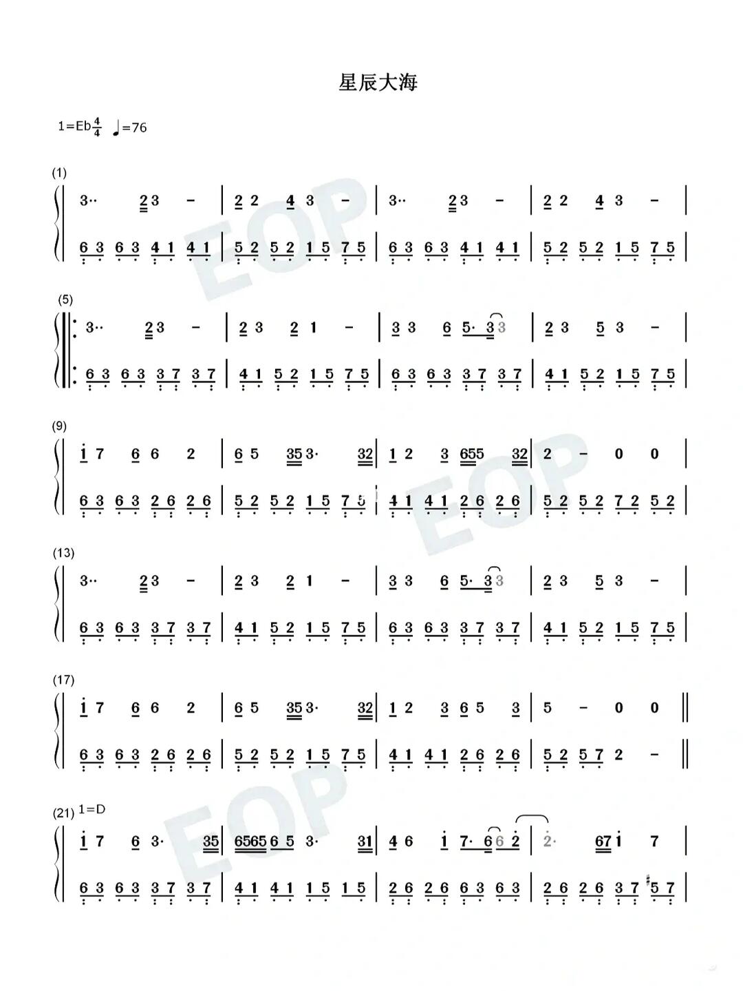 并提供《星辰大海》钢琴曲在线试听,《星辰大海》钢琴谱(双手简谱)