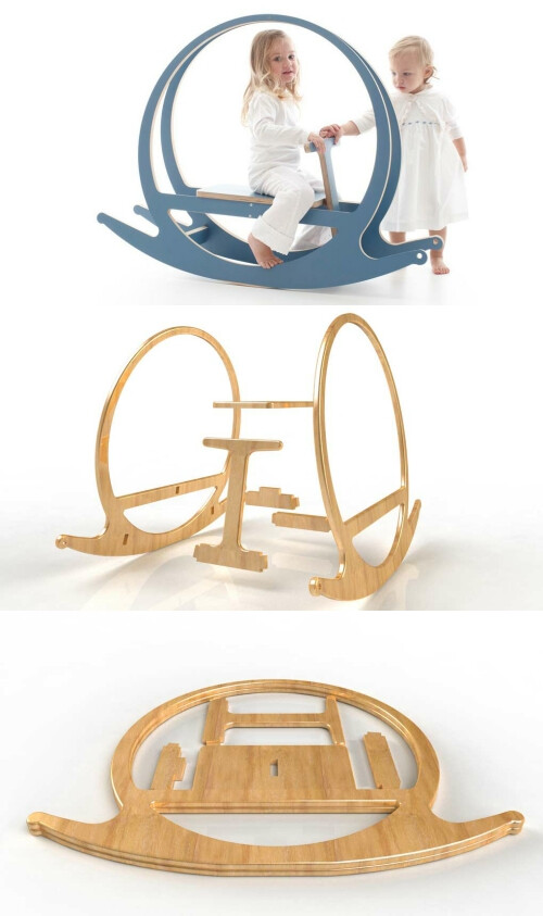 这款木马采用扁平化设计,采用2厘米厚胶合板做成,共由六个零部件组成