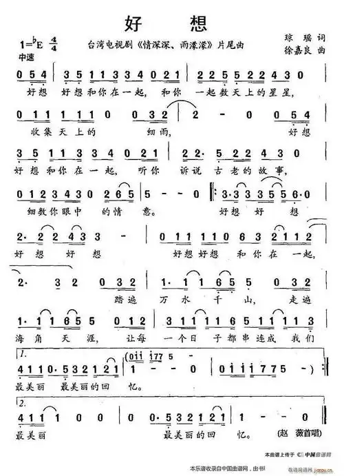 赵薇 徐嘉良 琼瑶 《情深深 雨蒙蒙》简谱
