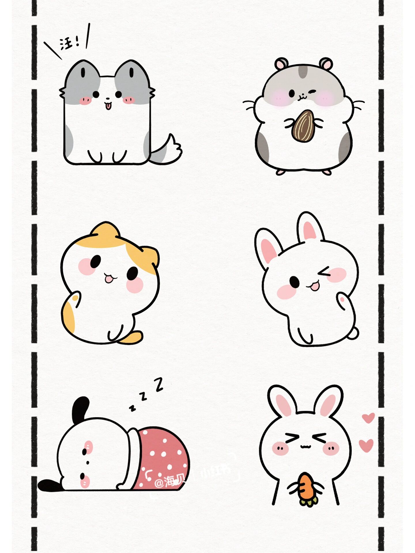 超萌小动物简笔画|可爱零基础手帐贴纸素材 有小动物陪着,就不会孤单