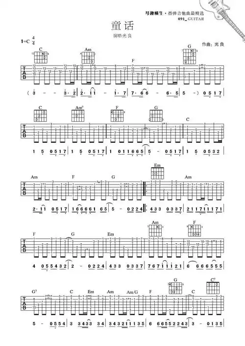 童话 简单版吉他谱c调六线吉他谱-虫虫吉他谱免费下载