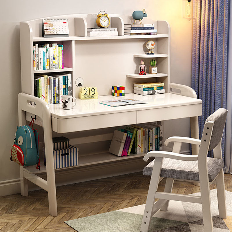 实木书桌书架书柜一体桌儿童学习桌椅家用卧室青少年学生写字桌子