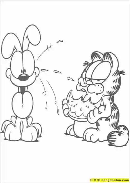 13张搞怪的加菲猫和欧弟吃货涂色图片-红豆饭小学生简笔画大全