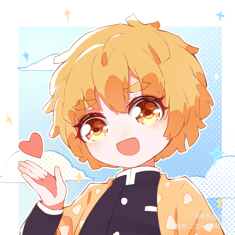 善逸跟美图秀秀这个模板太配了_鬼灭之刃我妻善逸平涂q版头像绘画作品